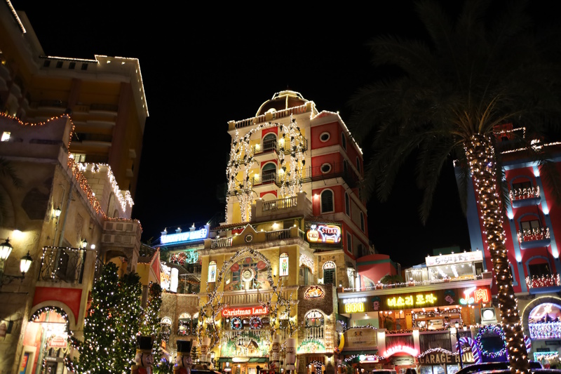 北谷のアメリカンビレッジは通常でもイルミネーションされていますが、クリスマスシーズンはいつも以上に華やかにライトアップされます。